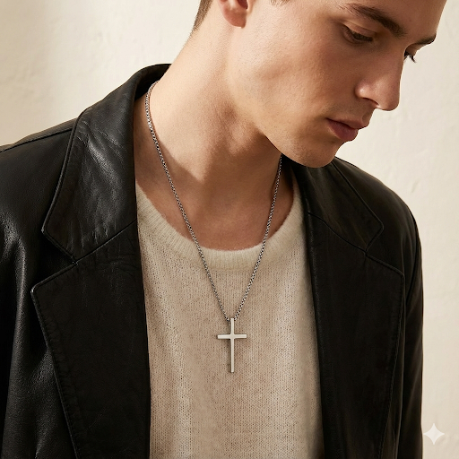 Este collar para hombre está fabricado en acero inoxidable de alta calidad, un material resistente, hipoalergénico y duradero, perfecto para el uso diario. Su diseño presenta una cruz clásica y elegante, acompañada de una cadena fina de 50 cm que aporta un estilo moderno y atemporal. El tamaño de la cruz es de 4cmx2cm.