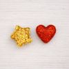 Medidas: Estrella: 5 cm de diámetro y corazón 4x5 cm